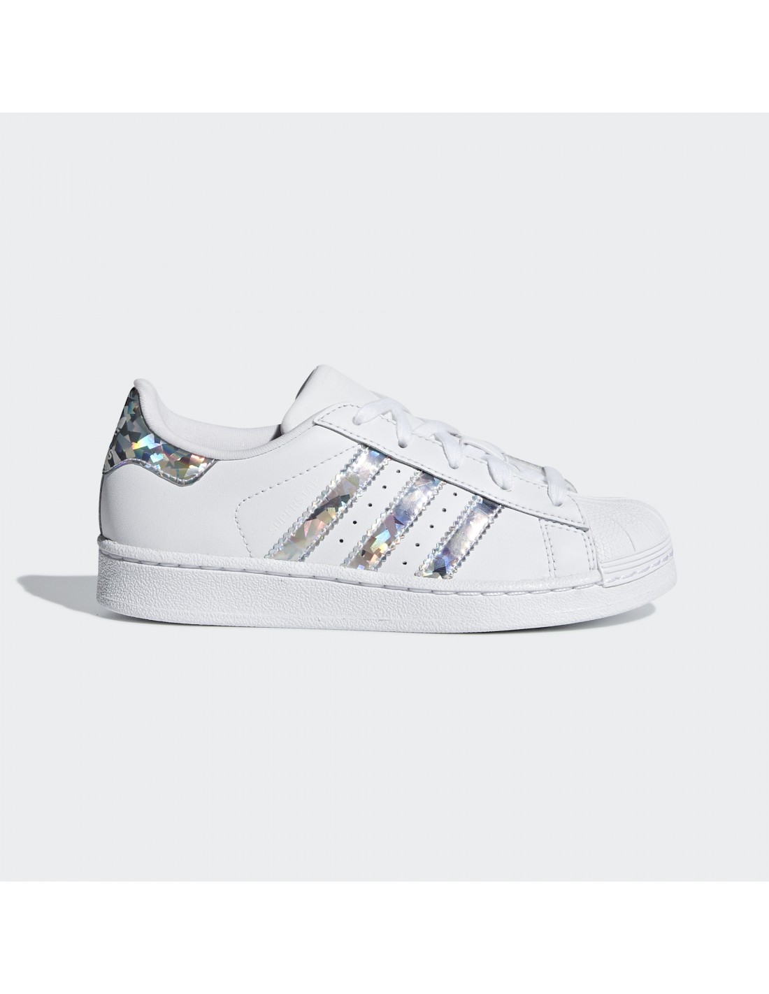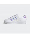 Esta zapatilla de piel se ha diseñado para que los jóvenes seguidores de la moda urbana. La Adidas Superstar actualiza el diseño con sus detalles de las 3 bandas en color plateado.